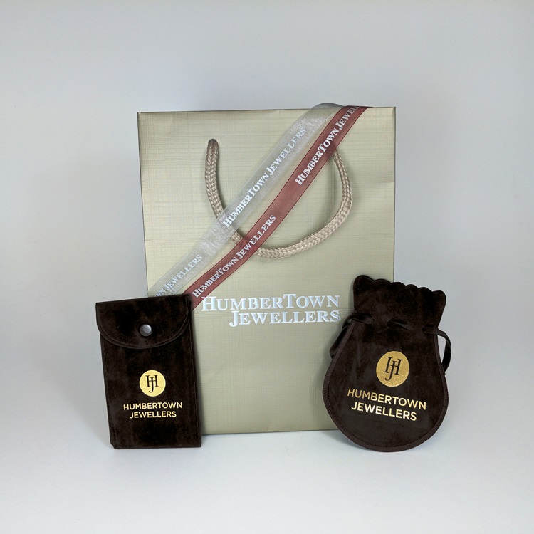 Humbertown Jewellers Shopper, Silver & Maroon Ribbon, Snap Button and Drawstring velvet pouches Jewelry & Accessories Bags – ALLRibbon