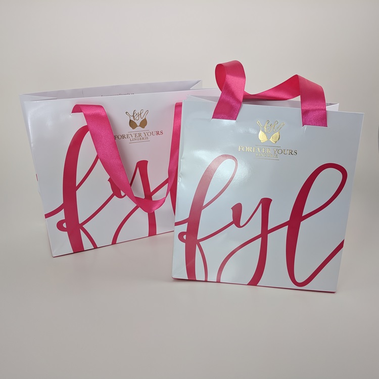 Forever Yours Lingerie Gloss Laminated Shoppers with Gold Hotstamp and Ribbon Handles ApparelJewelry & Accessories Bags – ALLBags – Paper