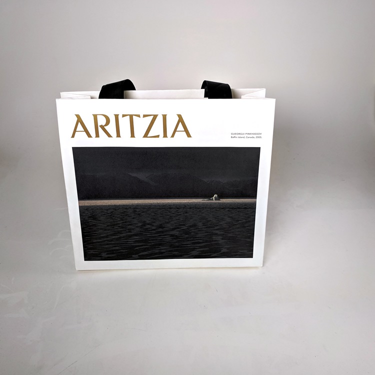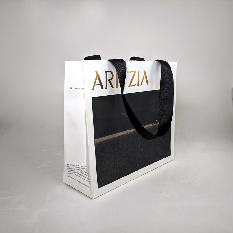 Aritzia Holiday Mini Shopper with Black Ribbon Handle and Gold Hotstamp Logo Apparel Bags – ALLBags – Paper