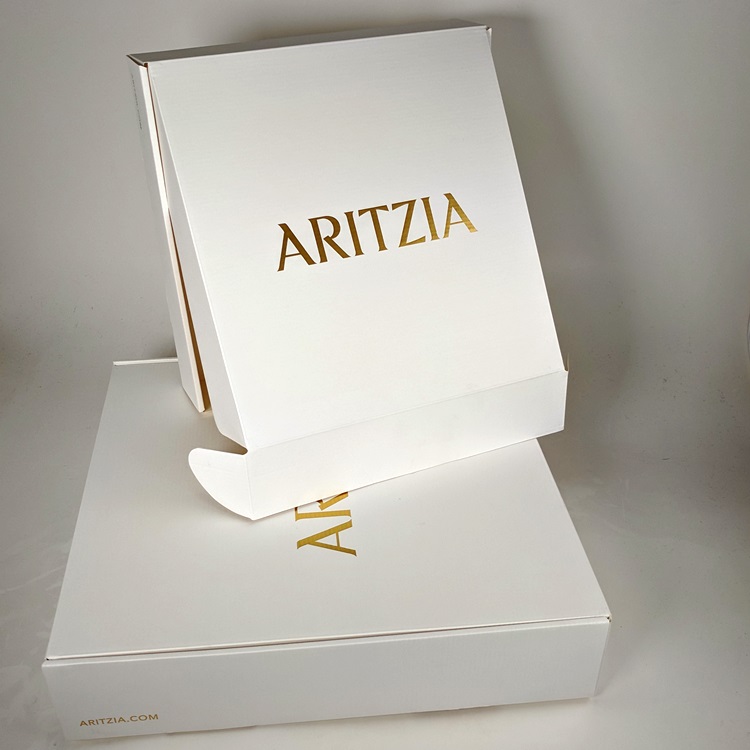 Aritzia Holiday Folding Gift Boxes with Gold Hotstamp Logo and Retail Sticker Labels Apparel Boxes – FoldingStickers & Labels