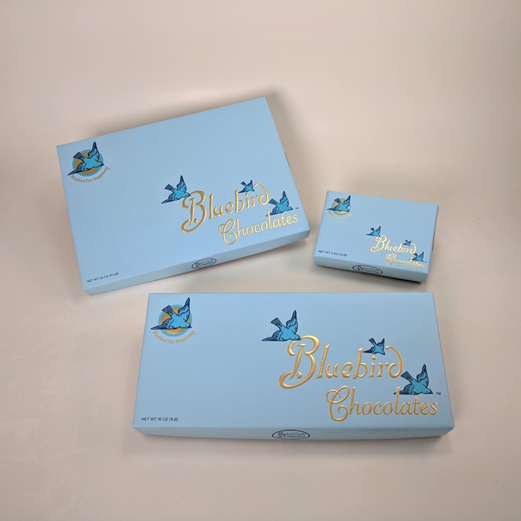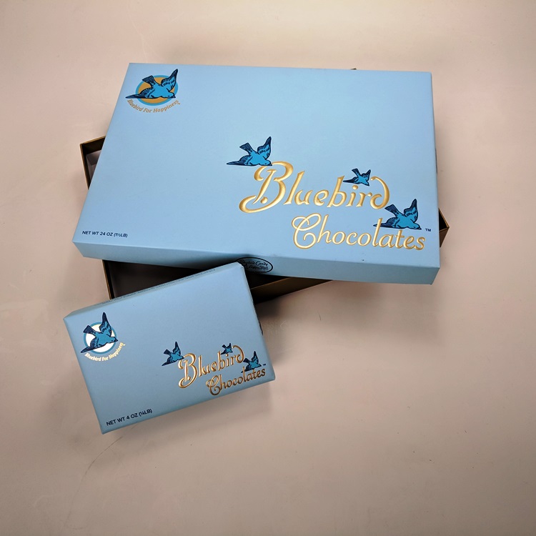 Bluebird Candy Loose Wrapped Rigid Chocolate Boxes with Gold Hotstamp Logo Confectionery Boxes – ALLBoxes – Rigid