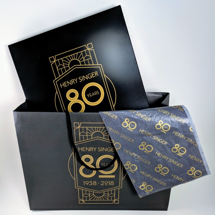 Henry Singer 80th Anniversary Gift Box, Printed Tissue and Shopper Apparel Bags – PaperBoxes – FoldingTissue