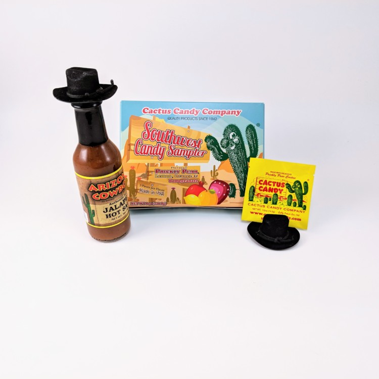 Cactus Candy Sampler Box, Candy Sleeve & Arizona Cowboy Hot Sauce Mini Hats Confectionery Boxes – FoldingOther