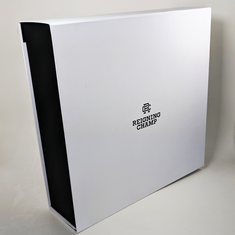 Reigning Champ Marketing Gift Box with Magnetic Closure side view detail ApparelE-Commerce Boxes – ALLBoxes – E-commerce